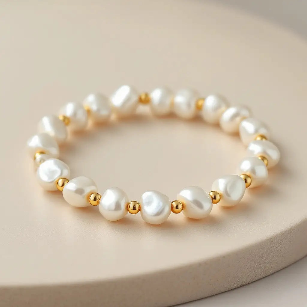 "Claire" Gold Filled Ball & Pearl Beaded Bracelet